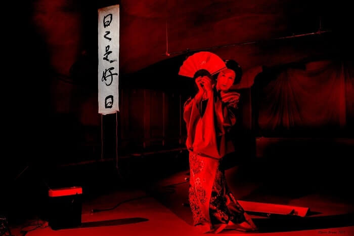Η παράσταση μεταφέρει το κοινό της, σε ένα ιαπωνικό δωμάτιο όπου τελείται μια παραδοσιακή τελετή τσαγιού. Η Γκέισσα Κικουνοχάνα (Ανθισμένο Χρυσάνθεμο) με απαλότητα και ευγένεια δημιουργεί ένα μεταξένιο τοπίο για το πνεύμα και τις αισθήσεις των παρευρισκόμενων. Όλα είναι αρμονικά και ιδανικά, μα δεν μένουν εκεί.