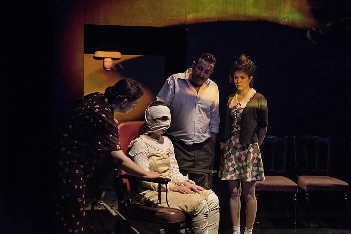 Επί σκηνής οι ηθοποιοί: Ηλίας Βαλάσης, Μαρία Κάτσενου, Στέλιος Δημόπουλος, Αθανασία Κουρκάκη, Ελωρίς Αλπανίδου